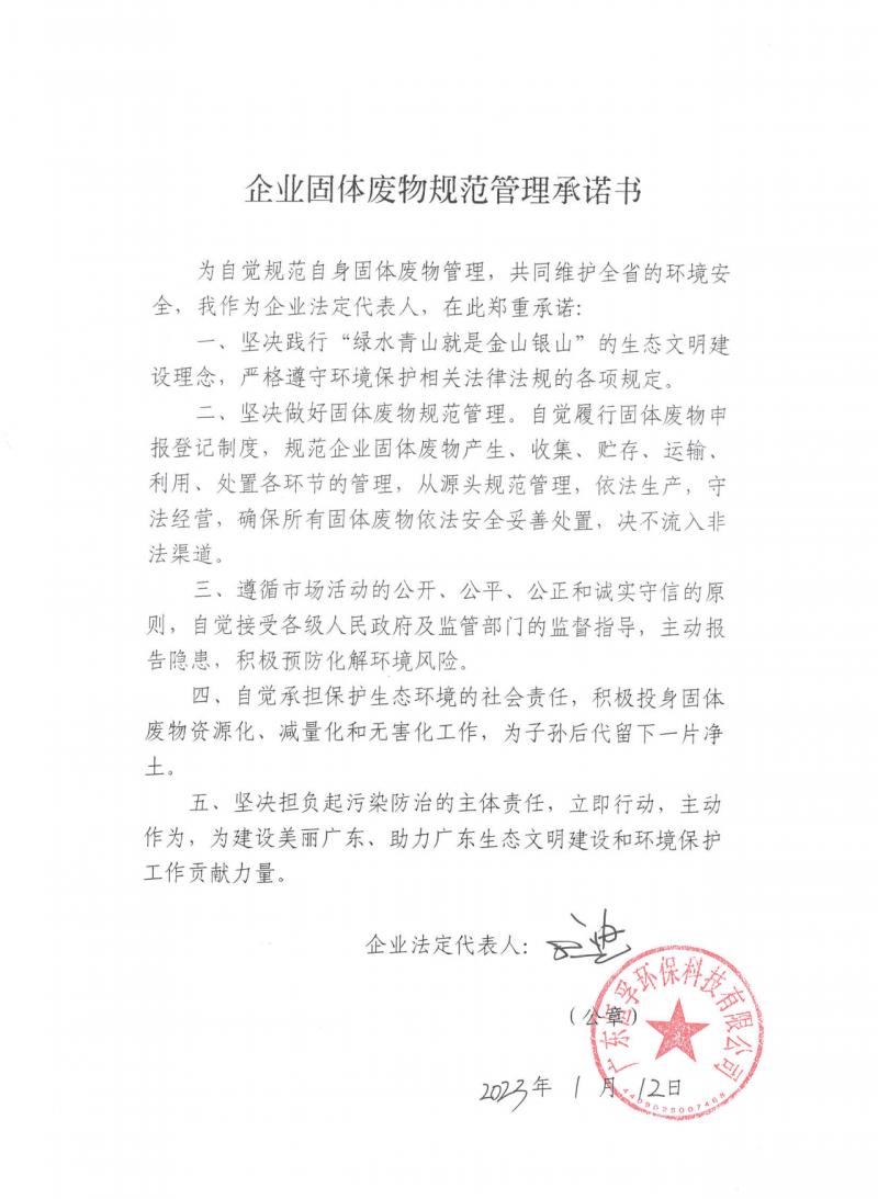 企业固体废物规范管理承诺书